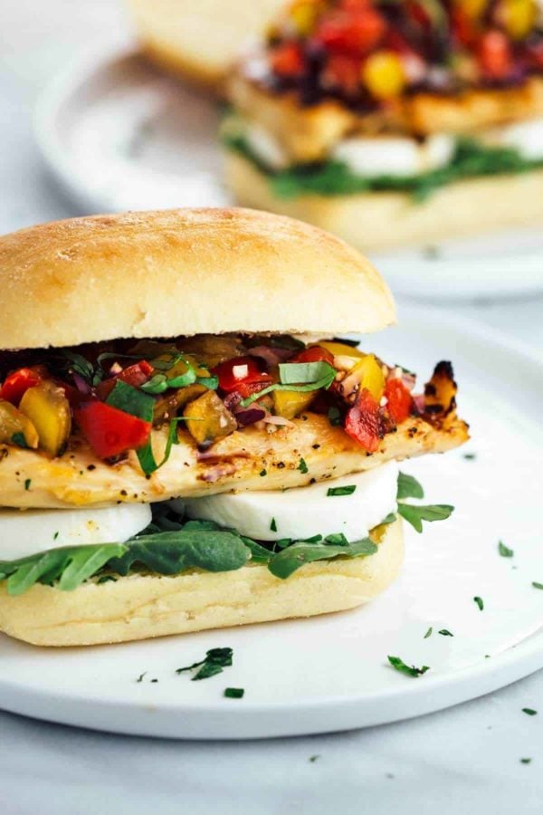 Grilled Chicken Bruschetta Sandwich On Ciabatta Bread