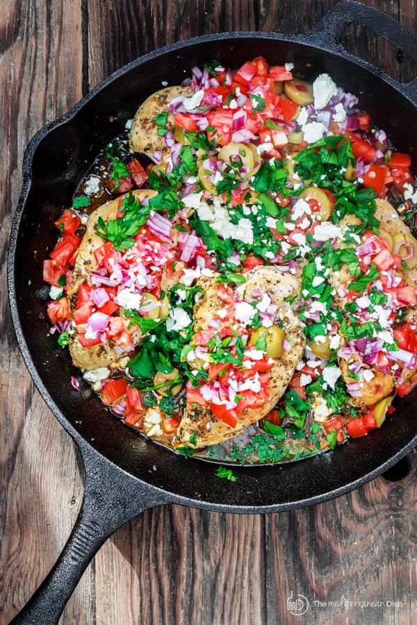 One Skillet Mediterranean Chicken Recipe With Tomatoes And Green Olives