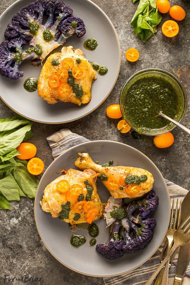 Basil Kumquat Chicken With Purple Cauliflower Mash