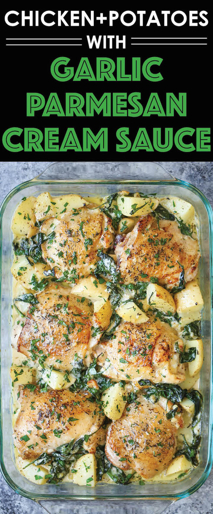 Chicken And Potatoes With Garlic Parmesan Cream Sauce