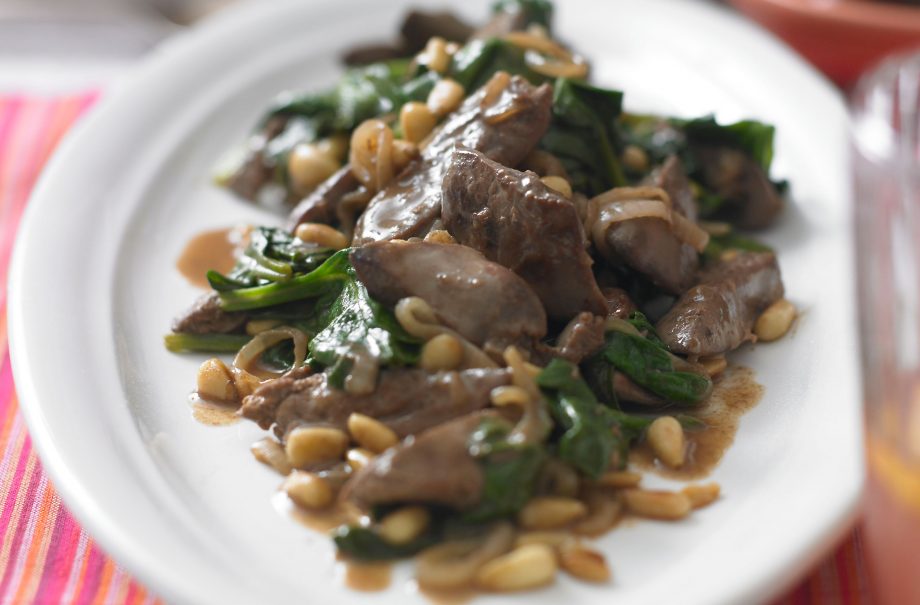 Pan Fried Chicken Livers With Sherry Spinach