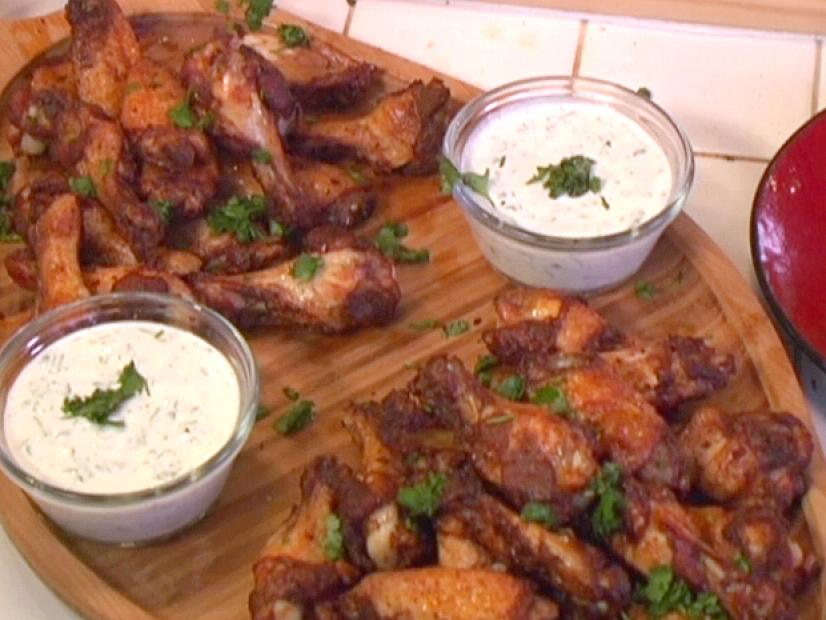 Spicy Chinese Five Spice Rubbed Chicken Wings With Creamy Cilantro Dipping Sauce