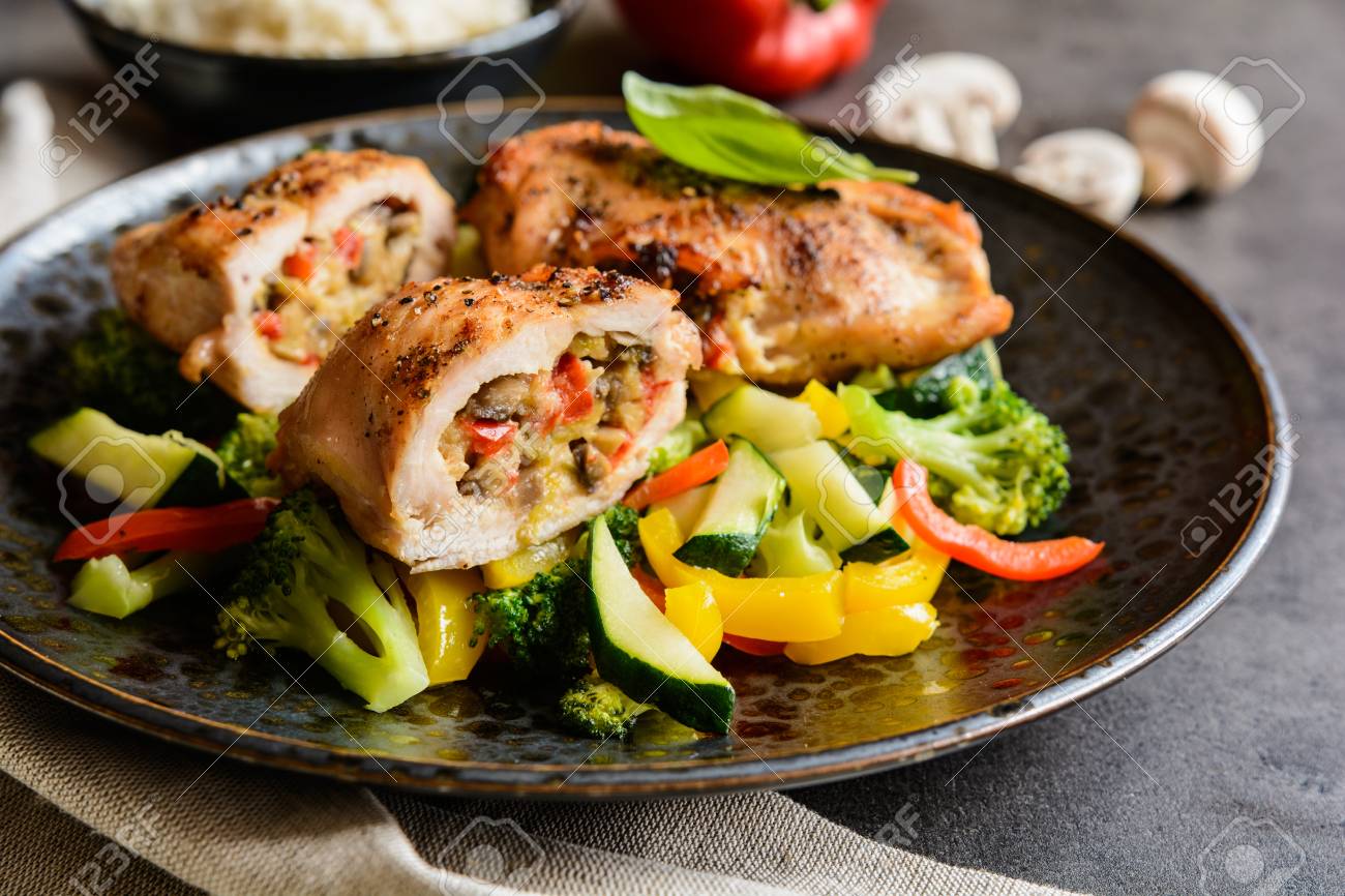 Roasted Chicken Breasts Stuffed With Mushrooms Green Onion