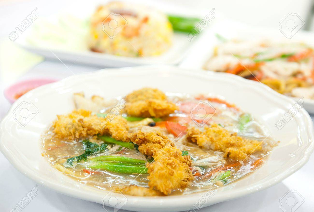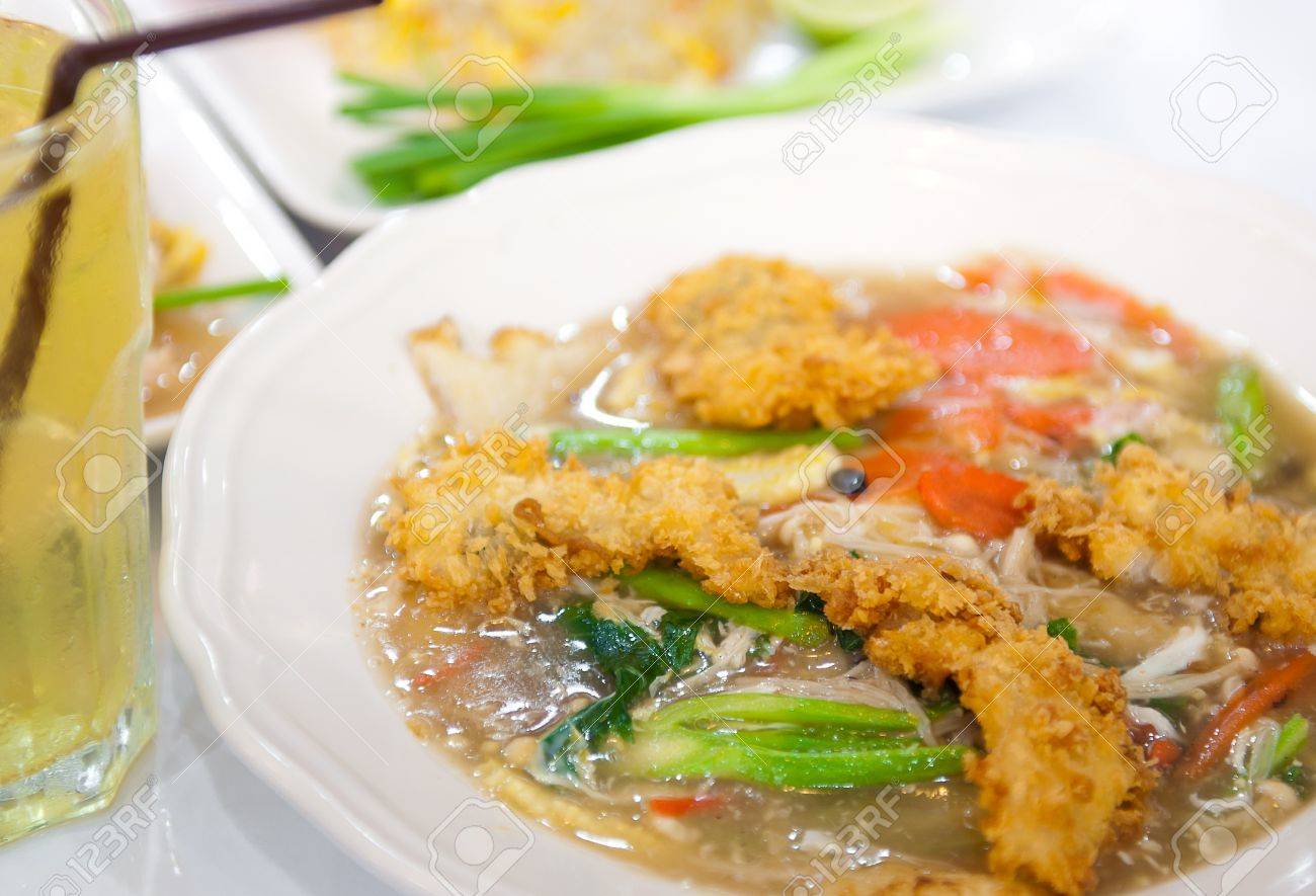 Rat Na Soup Golden Mushroom And Fried Chicken In Thai Chinese