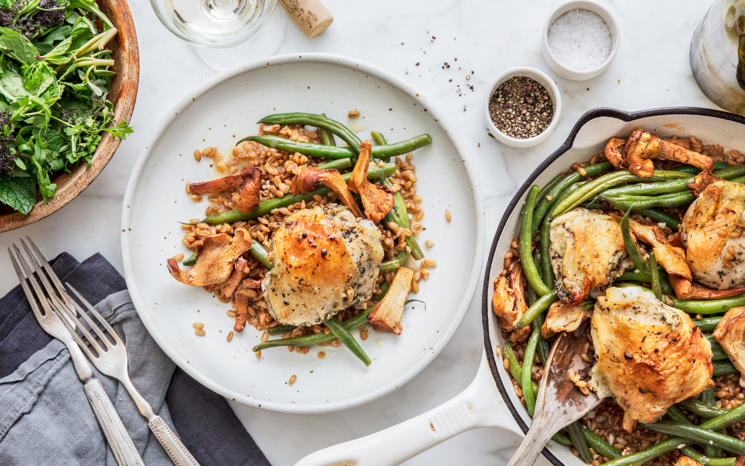 Roasted Chicken Thighs With A Warm Mushroom Grain Salad