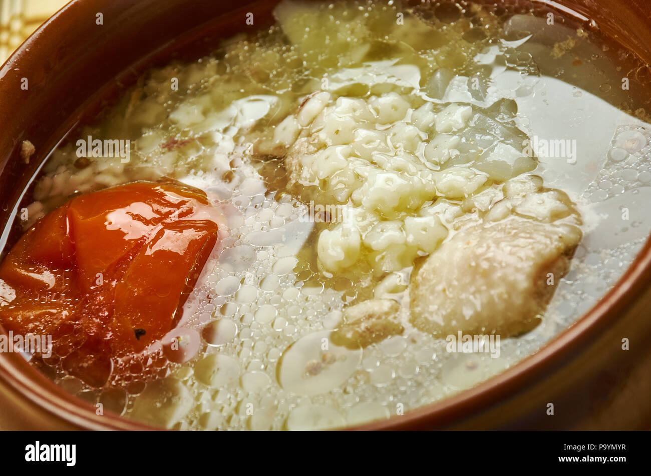 Italian Chicken Soup With Stellinu Pasta Pastina Stock